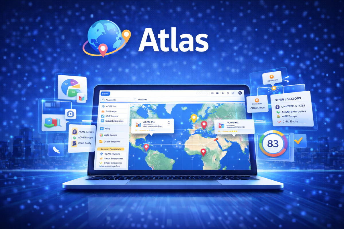 Atlas centralises company and parent locations into one powerful, interactive view within Salesforce. Visualise dynamic map data, explore linked entities, and navigate location insights directly from the Account.