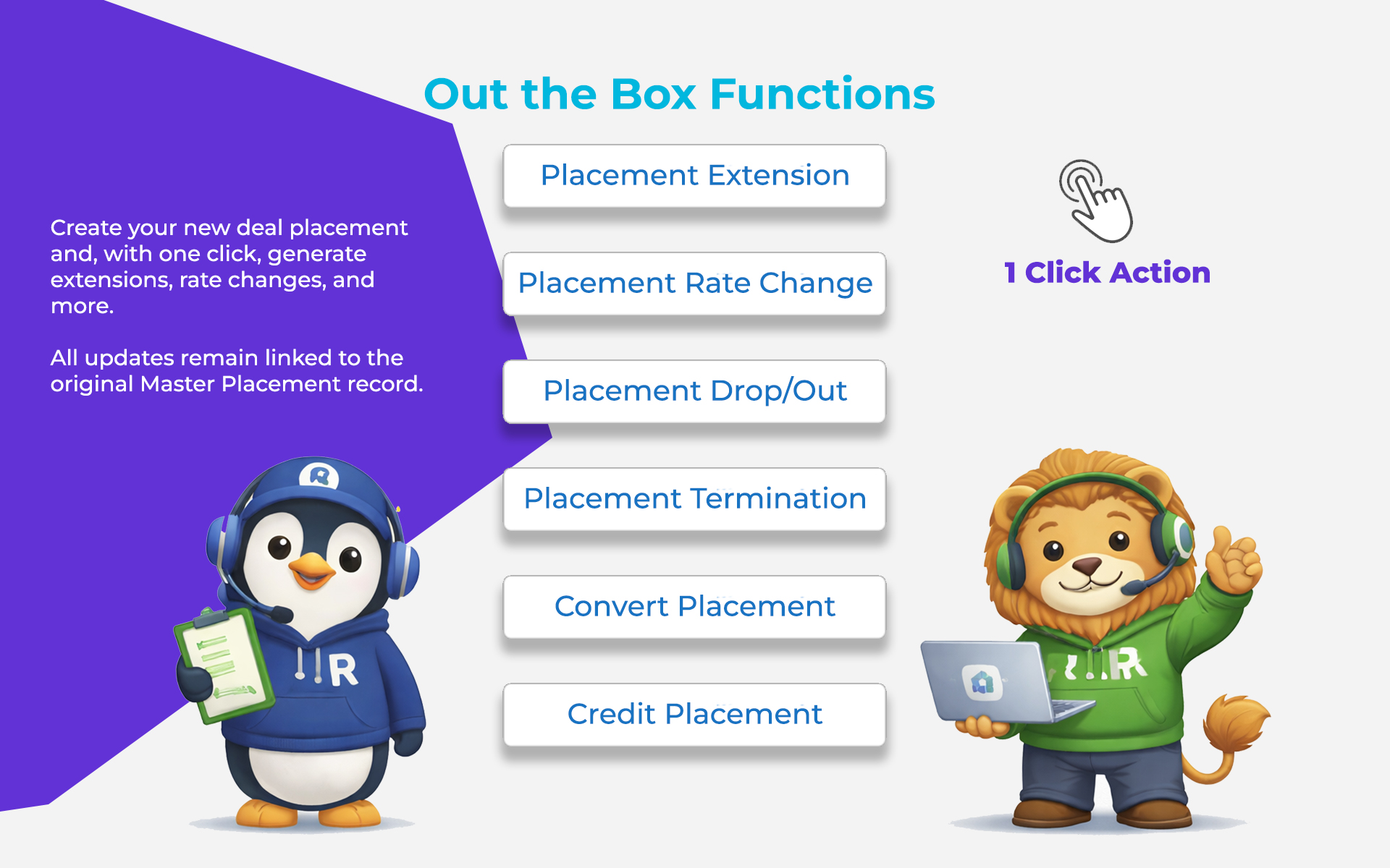 Extendify is designed to eliminate manual work, reduce risk, and create complete visibility across every placement action. Every extension, rate change, termination, and credit is automatically linked to the original master placement, creating a single source of truth. This structured relationship model ensures clean reporting, accurate revenue tracking, and full historical traceability — without duplicate records or fragmented data.